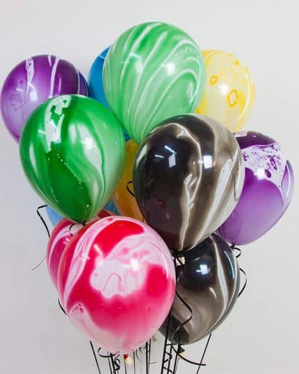 Итак, шарики из латекса с мраморным рисунком могут быть использованы для создания креативных декораций в стиле гранита. Такие шарики подойдут для создания декора на вечеринках в стиле «каменных» мотивов, к примеру, на мероприятиях с темой «дикий запад» или «викинги».